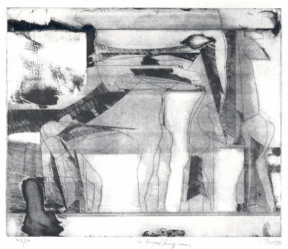 Radierung, handcoloriert "Zusammen, versteinert oder auch nicht"