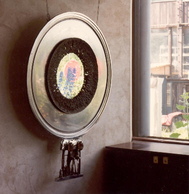 | Innenspiegel, 1980, Chrom-Nickel-Stahl, 2 Achate in Gold gefasst, Höhe 138 cm | |||||||||||||||||||||||||||||||||||||||||||||||||||||||||||